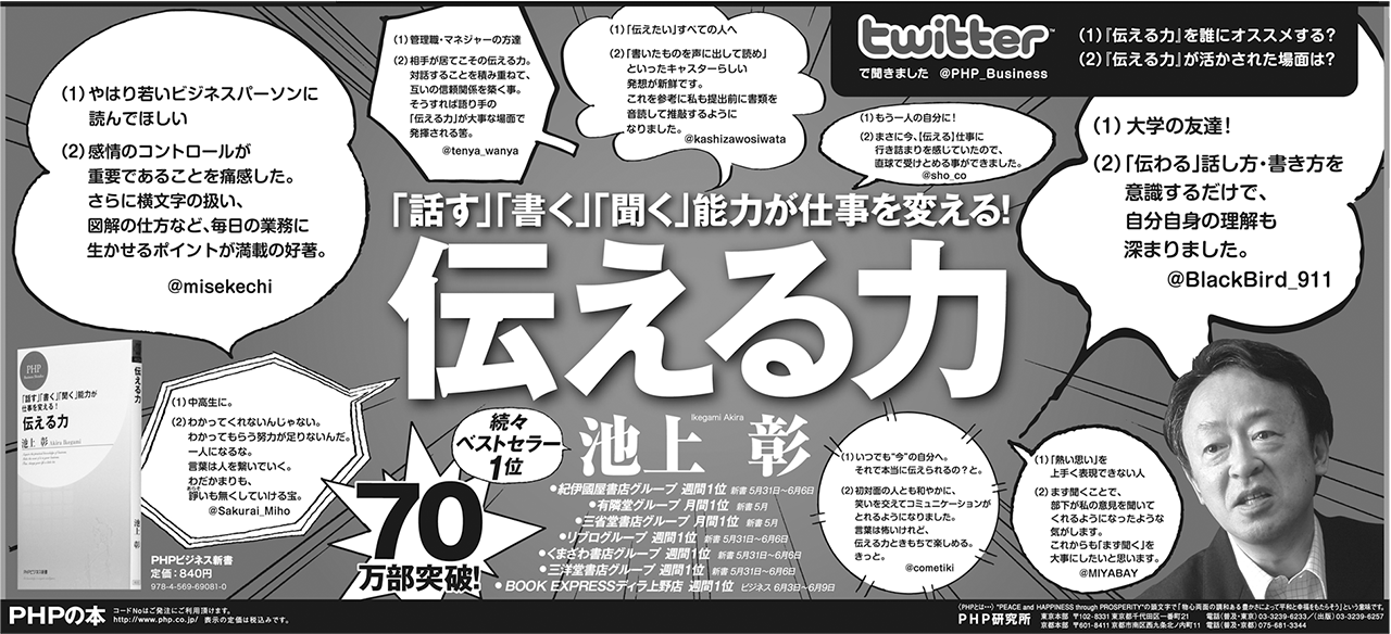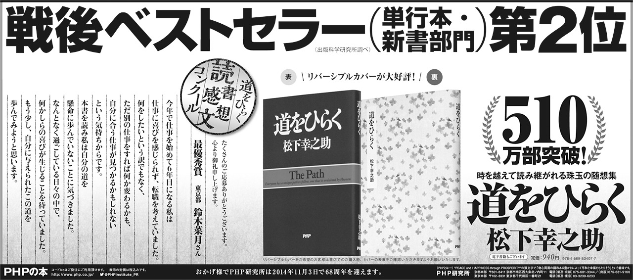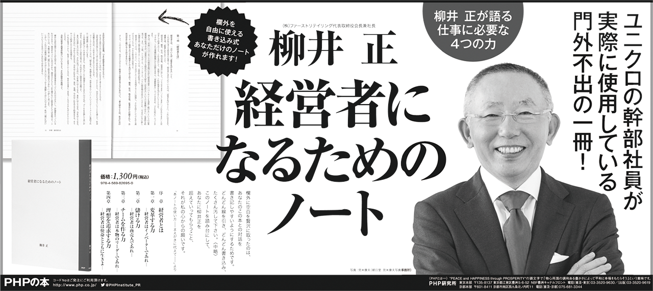PHP研究所「ありのままに、ひたむきに」全国紙全5段