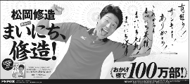 松岡修造氏の卓上カレンダー広告。100万部突破ということで、元気いっぱいお祭りのような広告に。