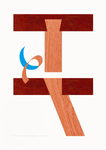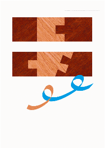 建具施行会社のイメージポスター。2種類の色の木材の組み合わせで構成した。