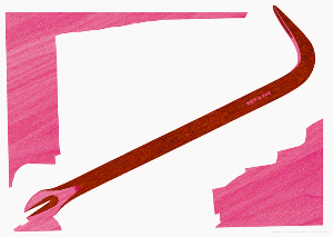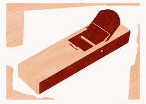 木を削ると建具職人の使う道具があらわれる。これは「罫引き」といって、しるしをつける道具。