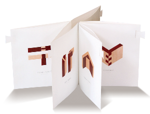 建具の、様々な接手(つぎて)方法を紹介したリーフレット。ページごとに接手の突起がある。